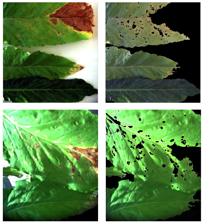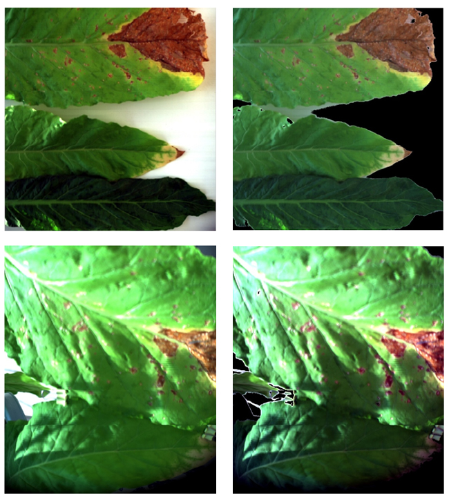圖11 作物葉片提取前后的圖像(含葉片病害區(qū)域)