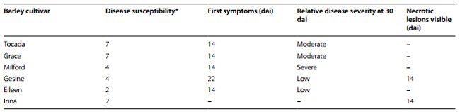表1 試驗過程中大麥品種病情發(fā)展的人工分級