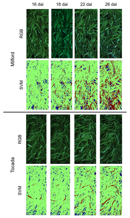 研究結(jié)果表明,盡管在冠層尺度上進行測量存在固有的困難,但該系統(tǒng)依然能夠在早期階段檢測出疾病癥狀,并可以在較長時期內(nèi)詳細(xì)評估疾病的嚴(yán)重程度和發(fā)病過程。與人工評估相比,系統(tǒng)能更早的檢測出發(fā)病癥狀且自動評估結(jié)果準(zhǔn)確率達94.83%。