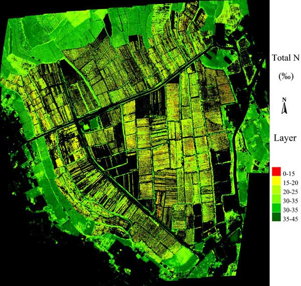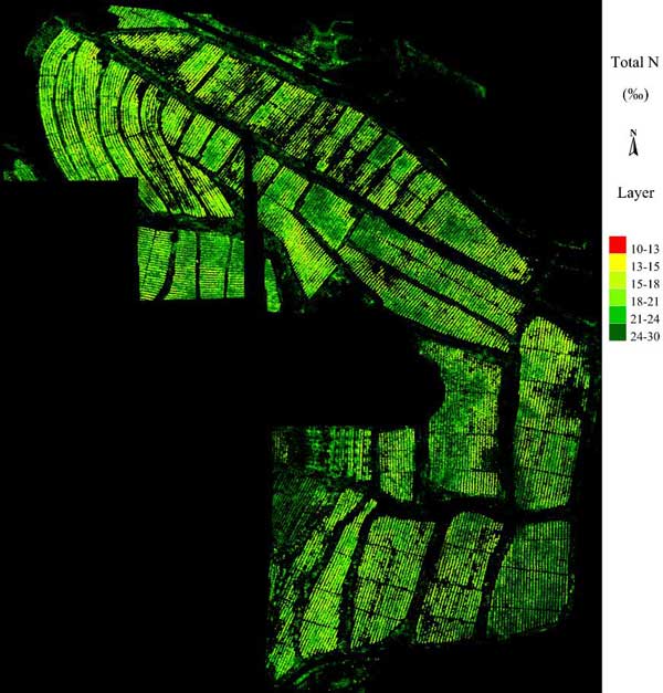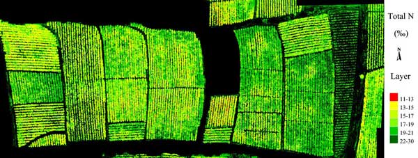 圖7.3 石板橋鎮(zhèn)煙草基地?zé)煵?、作物、雜草總氮反演圖