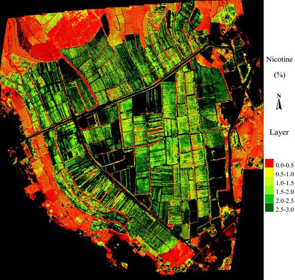 圖8.3 石板橋鎮(zhèn)煙草基地?zé)煵?、作物、雜草煙堿含量反演圖