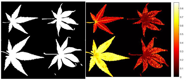 本文采用高光譜圖像技術(shù)檢測(cè)植物葉片內(nèi)部及外部特征,對(duì)楓葉內(nèi)部含量變化進(jìn)行可視化分析,以實(shí)現(xiàn)探索楓葉葉片隨季節(jié)變化而內(nèi)部質(zhì)量改變的目的。