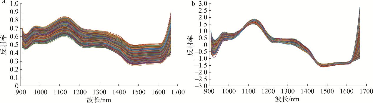 注: a: 原始光譜曲線; b: SNV預處理后的光譜曲線