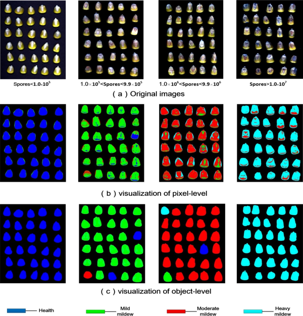 圖17基于像素級和對象級的玉米籽粒霉變等級可視化