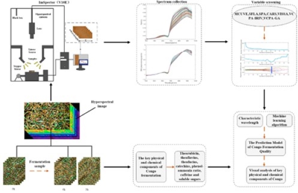 圖6. 高光譜成像技術(shù)結(jié)合多元分析法檢測藏茶品質(zhì)流程圖