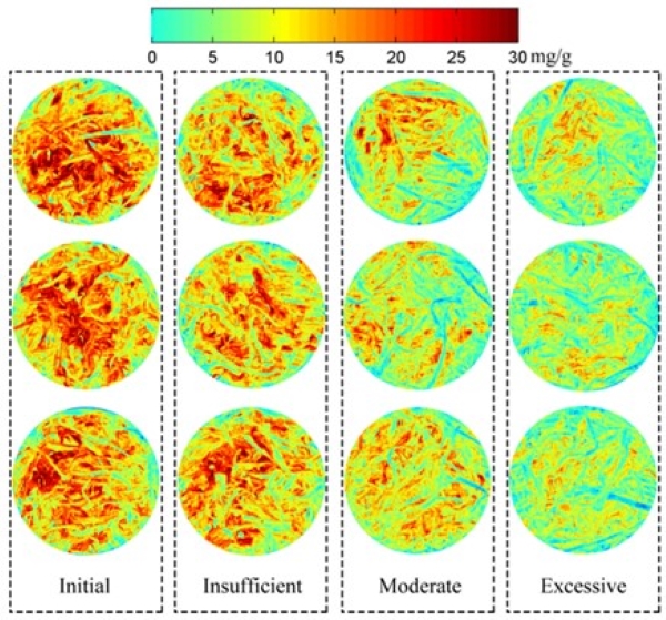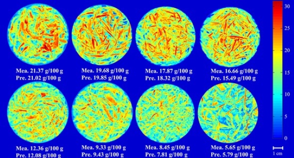 圖4. 近紅外高光譜成像技術(shù)實現(xiàn)對茶葉總多酚含量的空間分布可視化