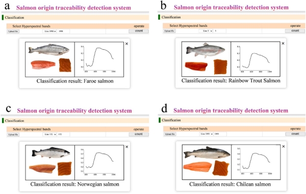圖6.云平臺(tái)分類(lèi)的結(jié)果。(a)法魯三文魚(yú)。(b)虹鱒。(c)挪威三文魚(yú)。(d)智利三文魚(yú)