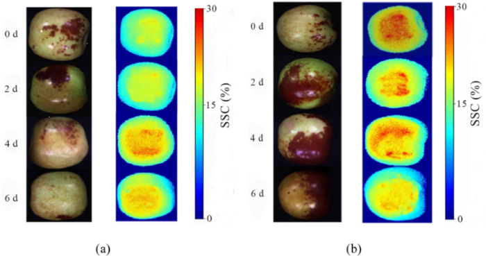 圖11中熟(a)和熟(b)冬棗保質(zhì)期的SSC可視化圖