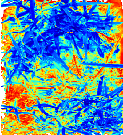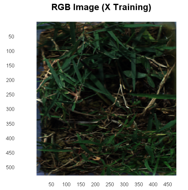 首先對原始高光譜圖像進(jìn)行裁剪,因在原始數(shù)據(jù)中有大量的冗余影像,這些會對數(shù)據(jù)的分析帶來干擾,其次再對原始數(shù)據(jù)進(jìn)行噪聲背景進(jìn)行扣除,減少干擾信號,同時對非研究對象進(jìn)行剔除(比如說在樣品中有一部分是泥土,它與植被的光譜圖像是有非常明顯的區(qū)別的,所以首先將其排除掉)。如下圖所示,對數(shù)據(jù)進(jìn)行背景扣除后的圖像。