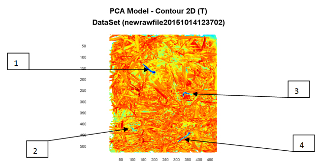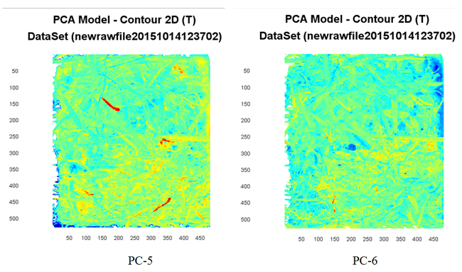 經(jīng)過主成分分析、光譜平滑等算法處理之后,能夠發(fā)現(xiàn)在主成分分析的1/6/7/8狀態(tài)下對蟲草的分類識別不是非常的精確,而在主成分分析的2、3、4、5狀態(tài)下能夠很好的將蟲草和其他非蟲草類的植被進(jìn)行分開,測算精度非常高(在圖PC-2 PC-3 PC-4 PC-5中蟲草顯示不同的顏色,這種顏色只是一個顏色顯示,非蟲草的本質(zhì)顏色,只是為了區(qū)分區(qū)別)。
