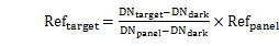 其中,Reftarget為目標(biāo)物的反射率,Refpanel為標(biāo)準(zhǔn)參考板的反射率,DNtarget為原始影像中目標(biāo)物的的數(shù)值,DNpanel為原始影像中標(biāo)準(zhǔn)參考板的數(shù)值,DNdark為成像光譜儀系統(tǒng)誤差。