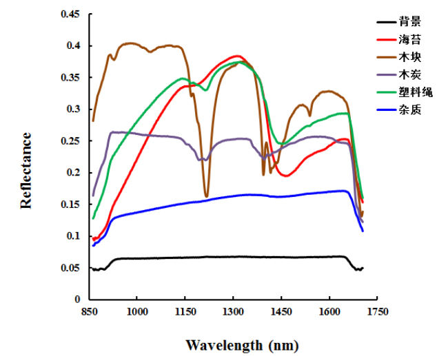 1、 海苔高光譜影像中各雜質(zhì)的高光譜反射率