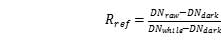 式中,Rref 是校正過的圖像,DNraw 是原始圖像,DNwhite為白板校正圖像,DNdark 是黑板校正圖像。