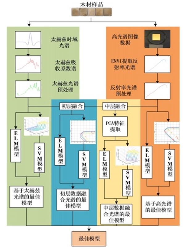 圖3. 基于高光譜和太赫茲光譜結(jié)合數(shù)據(jù)融合技術(shù)的木材識別研究流程圖