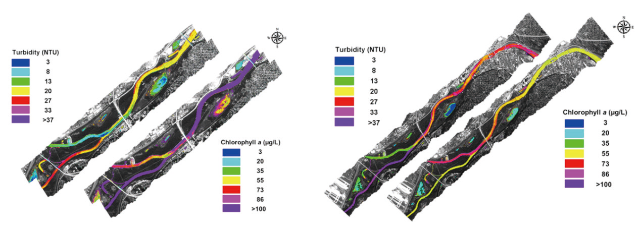 不同年份城市河流葉綠素a濃度、渾度的分布圖