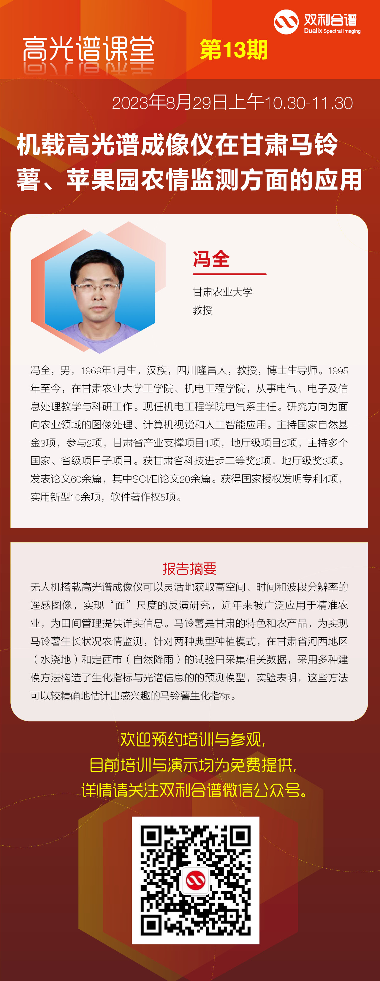 為多方位展現(xiàn)高光譜遙感領(lǐng)域的科研成果和前沿信息,江蘇雙利合譜科技有限公司特別策劃了“高光譜課堂”線上專題講座,我們將定期邀請高光譜遙感相關(guān)學(xué)科領(lǐng)域?qū)<覍W(xué)者開展前沿講座,分享高光譜知識和前沿應(yīng)用,為您在高光譜成像技術(shù)向更寬領(lǐng)域的拓展提供參考。