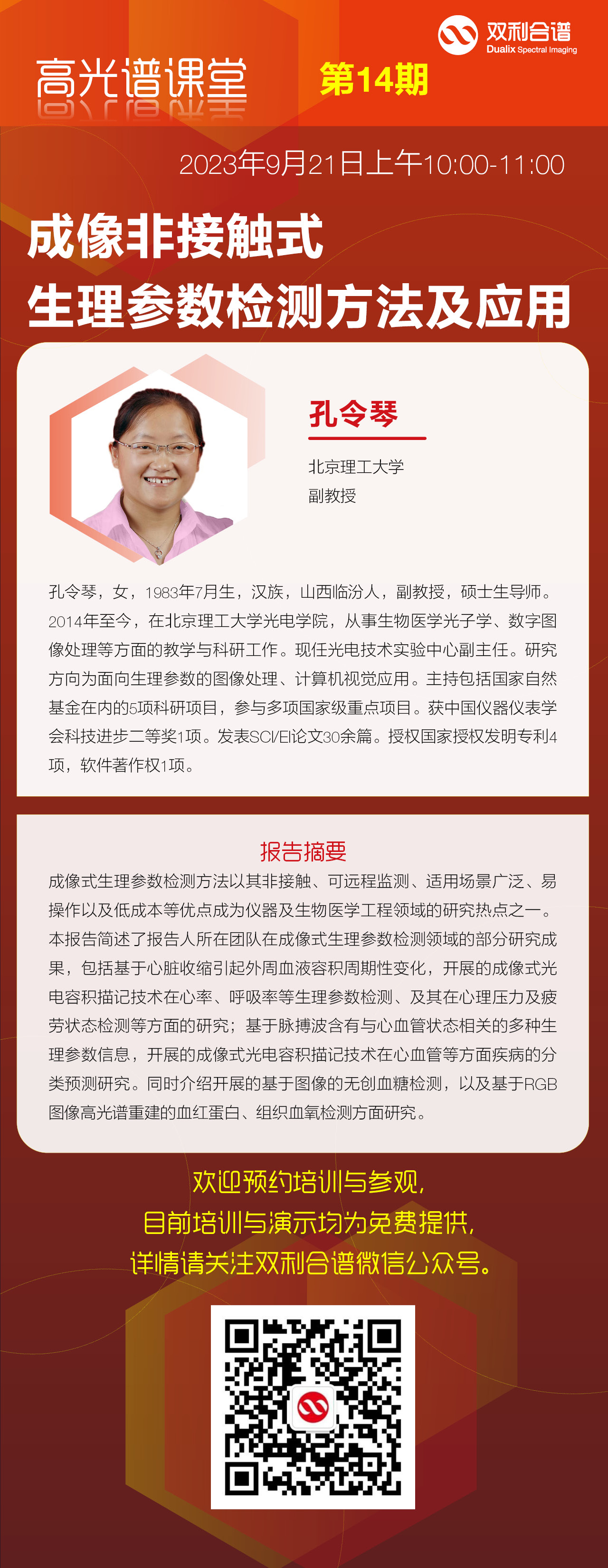 報告題目 :成像非接觸式生理參數(shù)檢測方法及應用