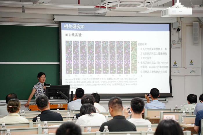 中山大學地理科學與規(guī)劃學院劉蓉副教授為大家?guī)怼陡吖庾V遙感影像跨場景分類研究》的報告。本報告主要介紹了高光譜遙感圖像憑借其獨特的光譜診斷能力,可實現(xiàn)地物的精細分類。然而,其高維特性使得分類模型對標注數(shù)據(jù)的需求量增加,而實際應用中標注工作依賴野外調查和專家知識,成本高昂且耗時,這一矛盾使得目標場景常面臨訓練樣本不足的困境??鐖鼍胺诸惙椒ㄍㄟ^利用帶標注的源域數(shù)據(jù)輔助無標注目標域的分類任務,為解決這一問題提供了可行途徑。本報告針對高光譜影像跨場景分類方法面臨的光譜偏移、域間語義差異等挑戰(zhàn)提出基于深度學習的解決方案。