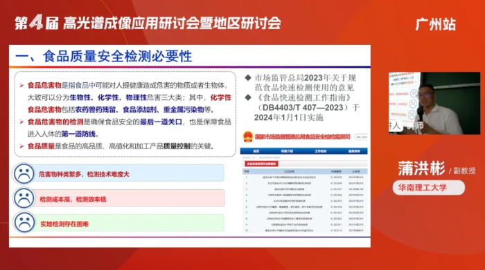 華南理工大學蒲洪彬副教授為大家?guī)怼陡吖庾V在食品品質快速檢測的應用與深度學習研究》的報告。本報告簡單介紹高光譜的原理和使用方法,重點匯報高光譜在果蔬、肉品等農(nóng)產(chǎn)品原料品質和過程監(jiān)控中的應用成果,并介紹人工智能在高光譜食品品質檢測中的應用情況。