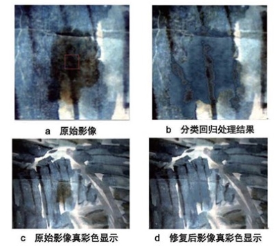 文物污漬檢測(cè)及修復(fù)方面。古畫(huà)和谷物在長(zhǎng)期的保存過(guò)程中,由于自然環(huán)境和人為保存不當(dāng)?shù)纫蛩氐挠绊?,常含有霉變、水漬、煙熏、蠅糞、油斑等污漬,影響其欣賞或收藏價(jià)值。因此,針對(duì)污漬的檢測(cè)與虛擬修復(fù)技術(shù)逐漸成為文物保護(hù)領(lǐng)域的重要研究方向。