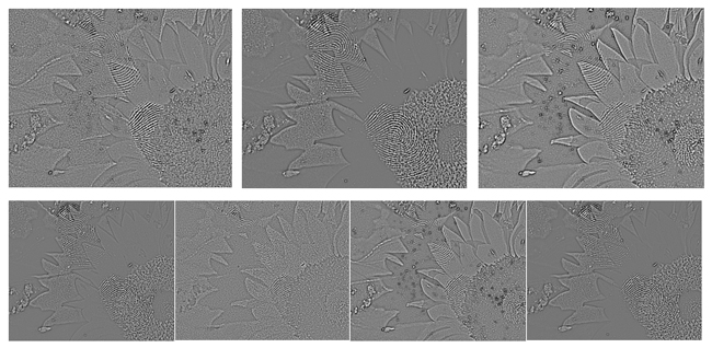 光譜信息散度(Spectral Information Divergence)是基于信息論的理論衡量兩條光譜之間的差異性(具體算法參考徐州老師的《基于光譜信息散度的光譜解混算法》一文)。圖5為基于光譜信息散度分解的七種端元的灰度圖。從圖中可知第二、四和七個端元能有效地提取指紋信息。但仍受到少數(shù)背景的干擾。