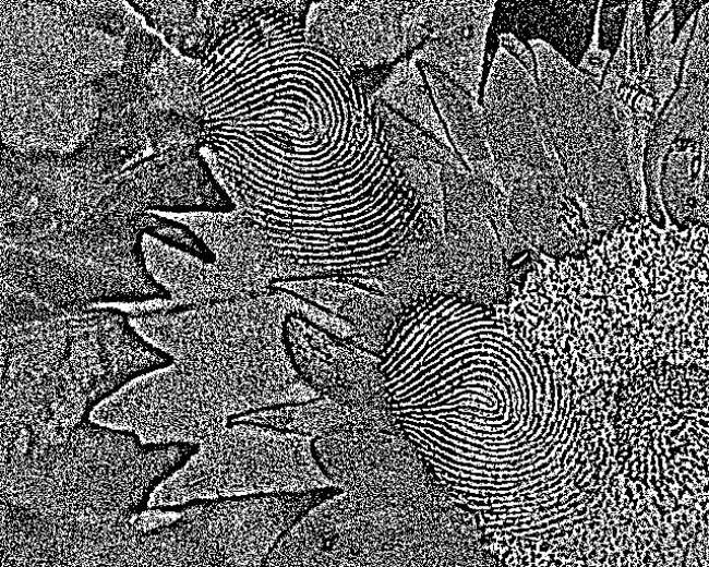 圖7雖然能較為清晰地顯示指紋的輪廓信息,但是其周邊包含了較多了無用的背景信息,為了更加方便地進(jìn)行目視解譯,了解指紋的輪廓,因此有必要進(jìn)行對指紋進(jìn)行區(qū)域截圖,如圖8所示。