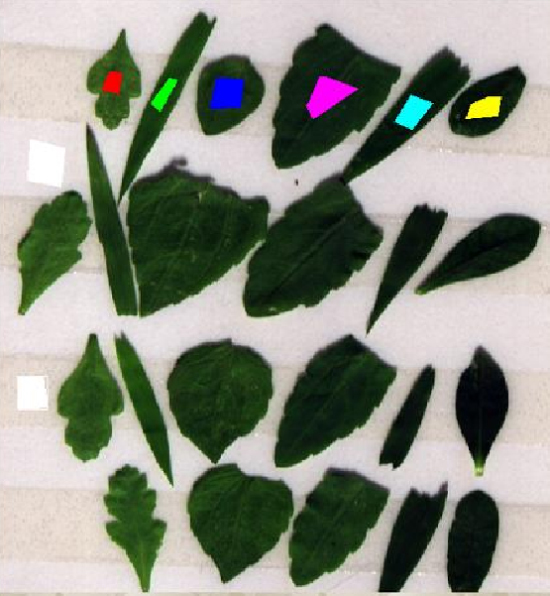 圖4罌粟葉片混雜在其他各種不同植物的葉片之中的高光譜RGB重構(gòu)圖像