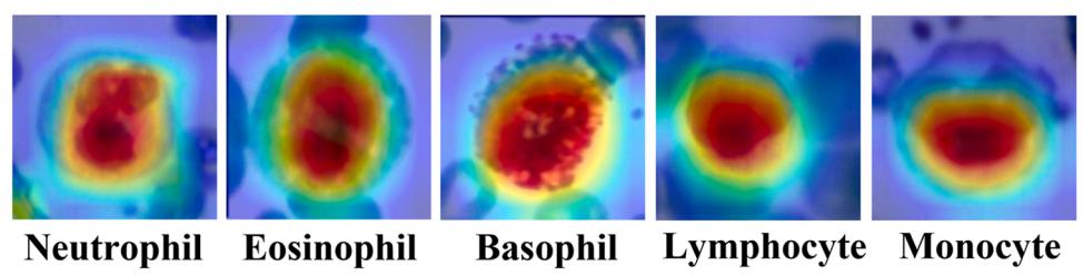 圖7 基于預(yù)測集WBC光譜波長的梯度加權(quán)類激活映射