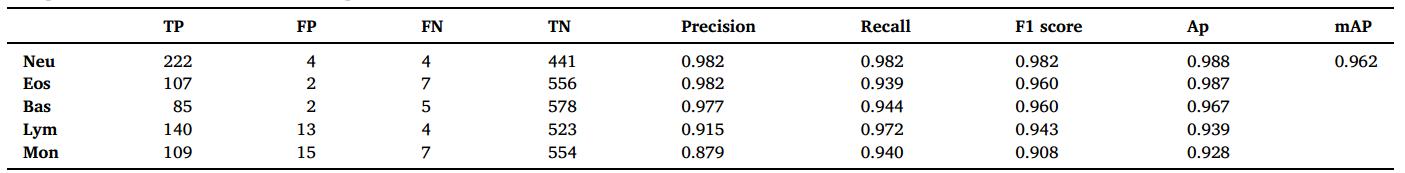 表1 多數(shù)據(jù)Faster RCNN在不同WBC分類中的性能比較