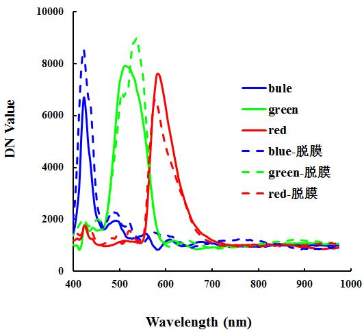 2.1 華為mate7顯微下放大5倍其在脫膜前后紅綠藍(lán)三顏色的光譜變化