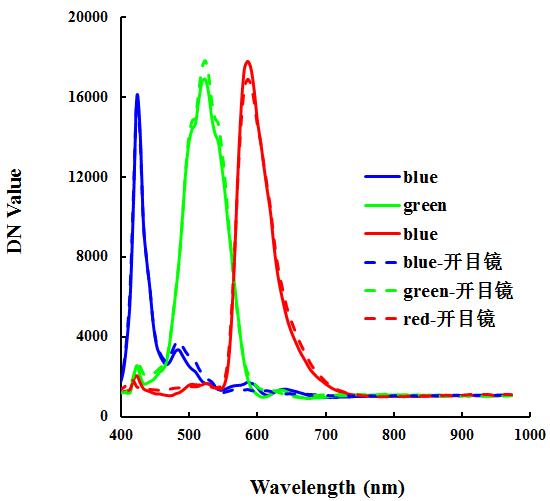 2.2 iphone 6 plus顯微下放大10倍其在開目鏡前后紅綠藍(lán)三顏色的光譜變化