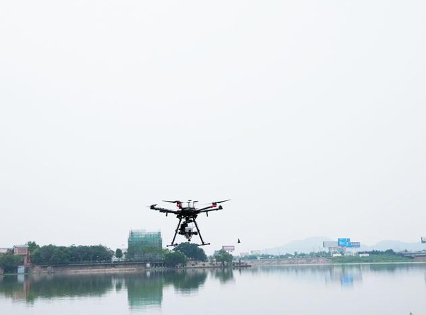 圖1 無人機(jī)高光譜系統(tǒng)起飛監(jiān)測河流水污染示意圖