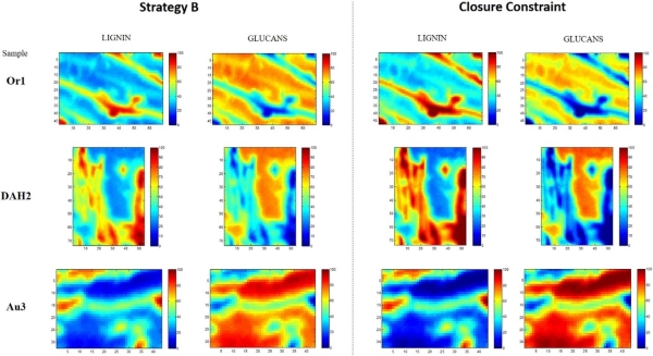 圖11.MCR-ALS定量樣品木質(zhì)素和葡聚糖可視化圖