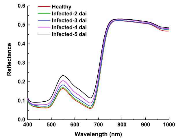 圖2 小麥白粉病高光譜時序響應特征曲線