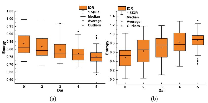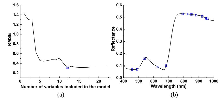 圖5顯示利用連續(xù)投影算法(SPA)進行特征波長選擇的過程。當RMSE達到最小值0.31時,確定了12個特征波長,分別是457,491,540,634,677,790,831,857,888,933,952,967nm。最終以光譜數(shù)據(jù)建立PLS-DA模型得到校正和交叉驗證的總分類準確率分別為93.8%和89.2%,在驗證集的預測中,總分類準確率為88.6%。利用灰度共生矩陣(GLCM)從前3張PC得分圖像中提取3種紋理特征(能量、熵和對比度),生成9個紋理變量。由紋理特征建立PLS-DA模型,最終得到校準、交叉驗證和驗證中總分類準確率分別為74.6%、73.8%和70.0%。