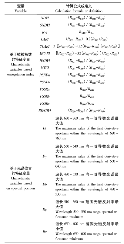 表1 基于光譜曲線構(gòu)建的植被指數(shù)和三邊參數(shù)