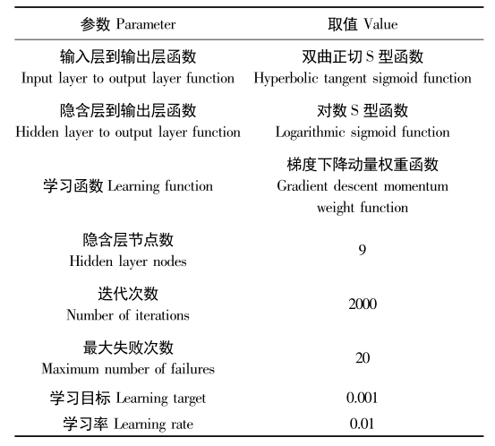 表2 BP神經(jīng)網(wǎng)絡(luò)算法參數(shù)
