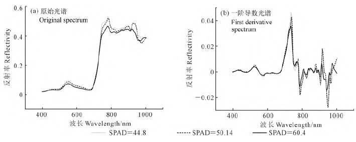 圖1 谷子葉片不同SPAD 值下的光譜反射率