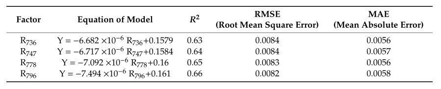 本研究采用簡單線性回歸以及多元線性回歸模型對SMC進行估測,并以RMSE、R2、MAE作為評價標準。