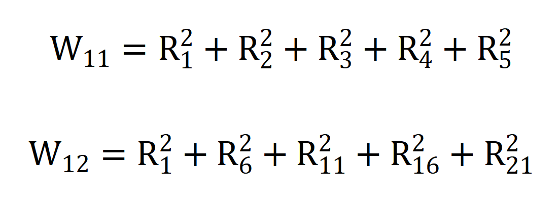 表2總結了PSO-ELM參數(shù)的正交陣列結果,其中Wij是從參數(shù)j的第i個值得到的R2之和。例如,W11是通過計算第一個參數(shù)的第一個值對應的R2之和得到的,pop = 40,而W12是通過計算第二個參數(shù)的第一個值對應的R2之和得到的,w = 0.3。具體計算公式如下所示。