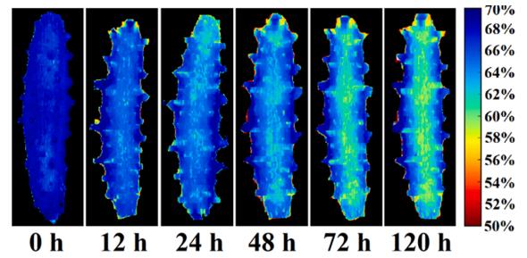 圖8 基于HSI-CCS-DL模型的海參腌制過程MC分布可視化