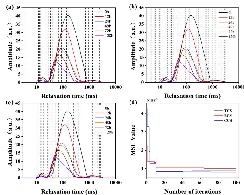 圖9 利用LF-NMR-TCS-DL(a), LF-NMR-BCS-DL(b), LF-NMR-CCS-DL(c)模型選擇的波段以及其MSE衰減(d)。