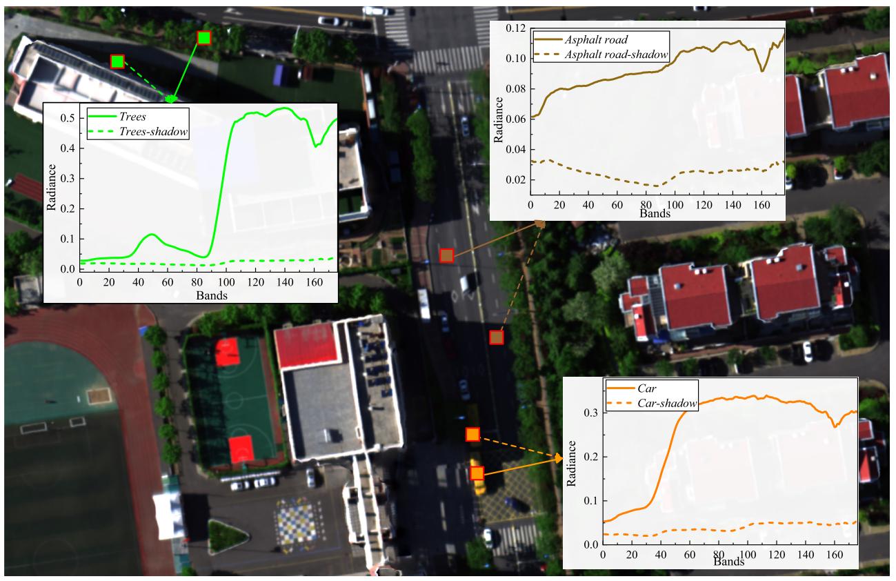圖7:土地覆蓋和影子土地覆蓋的光譜曲線。