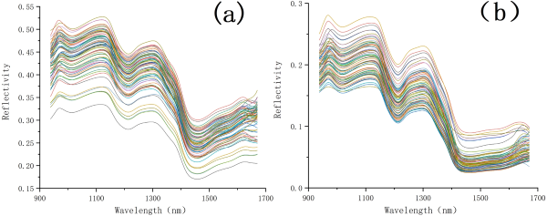 圖2. 大米和精米樣品的原始光譜:(a) 大米;(b) 精米。