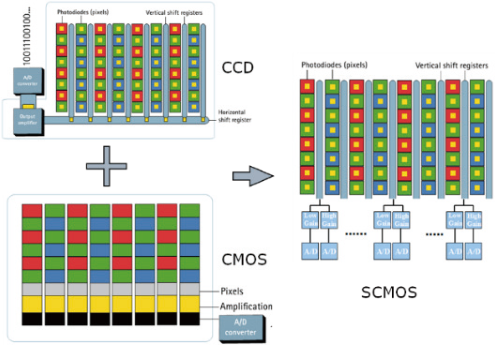 • SCMOS不僅有CCD讀出噪聲低,靈敏度高的成像優(yōu)勢(shì),還有CMOS高速的讀出速度,速度可以達(dá)到K級(jí)別;